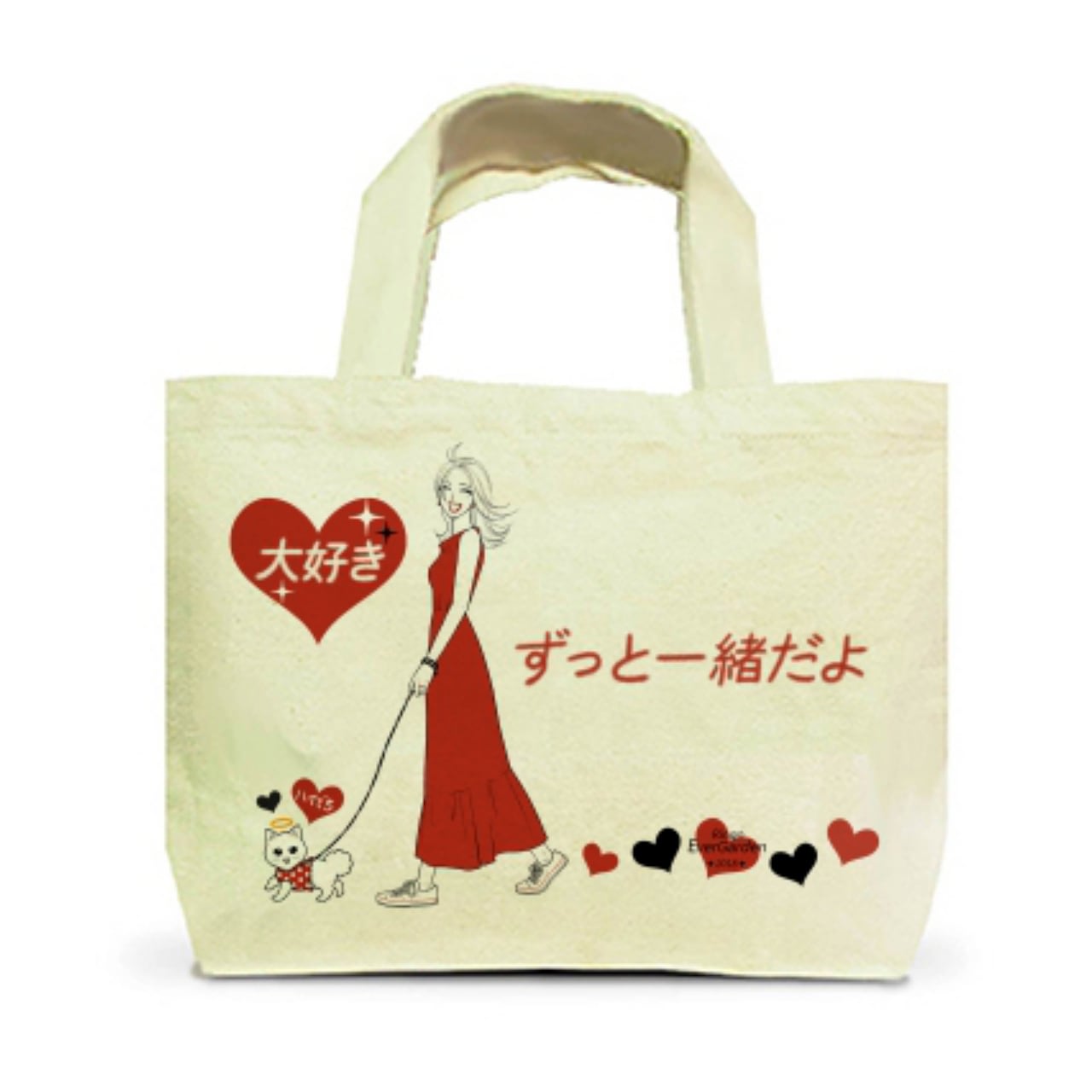 メッセージを込めたかなつ久美オリジナルイラスト付きおそろいお散歩バッグS✦ずっと一緒